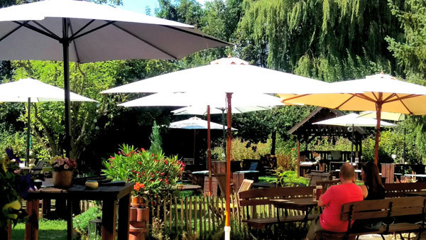 Unser Biergarten liegt mitten im Grünen in einer kleinen Park-Landschaft.